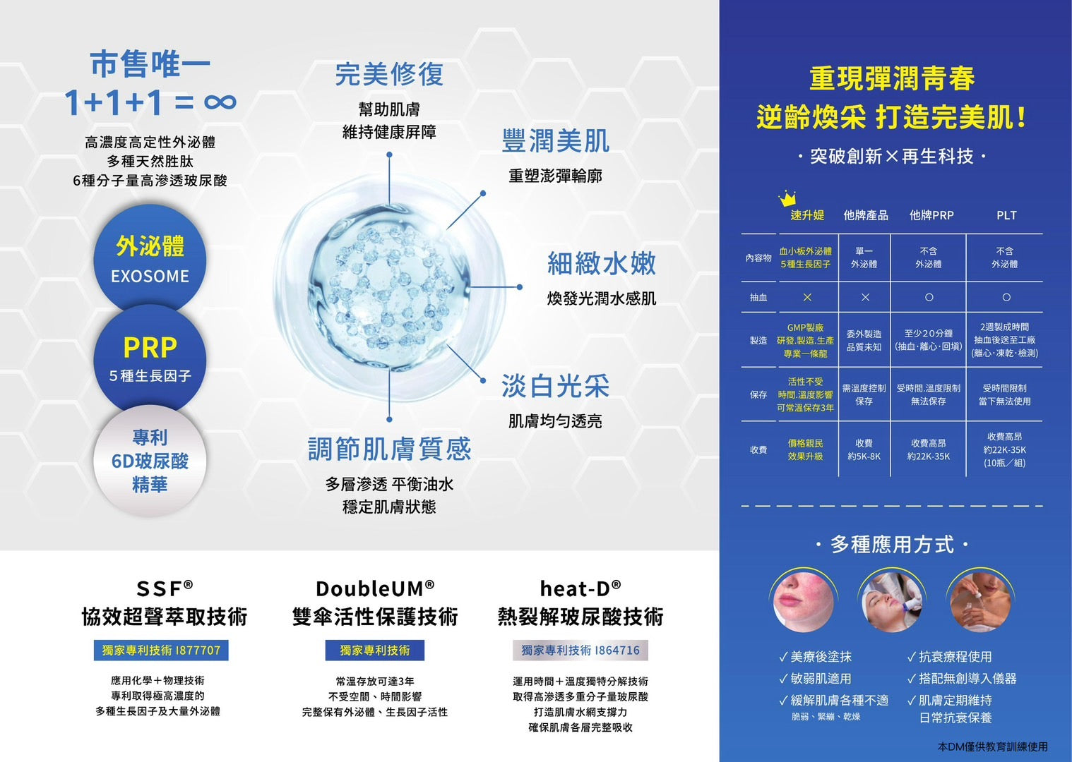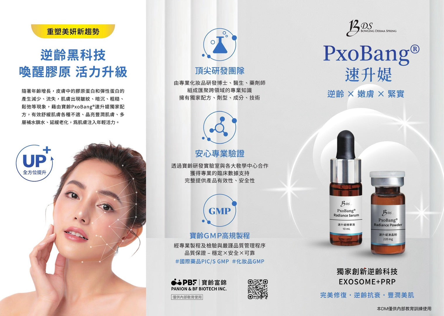 本療程融合「VEGA水飛梭科技」與「寶齡富錦 PxoBang® 外泌體+PRP再生療程」,雙重喚醒肌膚生命力。