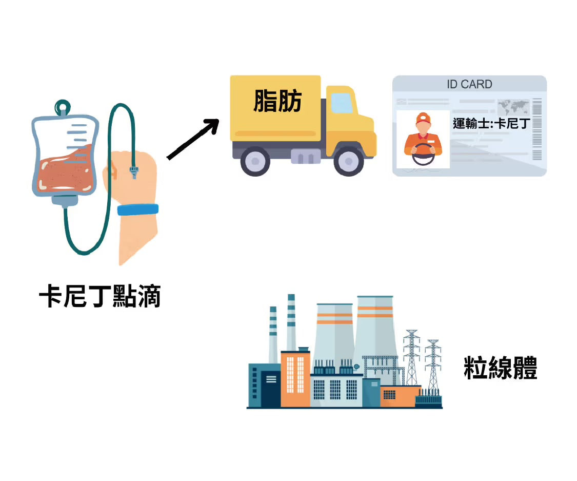可以想像左旋肉鹼搬運工人把脂肪搬運到身體發電廠(粒線體)一樣,當脂肪丟進粒線體,人體脂肪燃燒的效率就會提高很多,除此之外左旋肉鹼也能幫助胃部問題多的肥胖患者正常消化、加速胃腸蠕動,讓食物更容易被傳送至腸道,並順利排出體外。