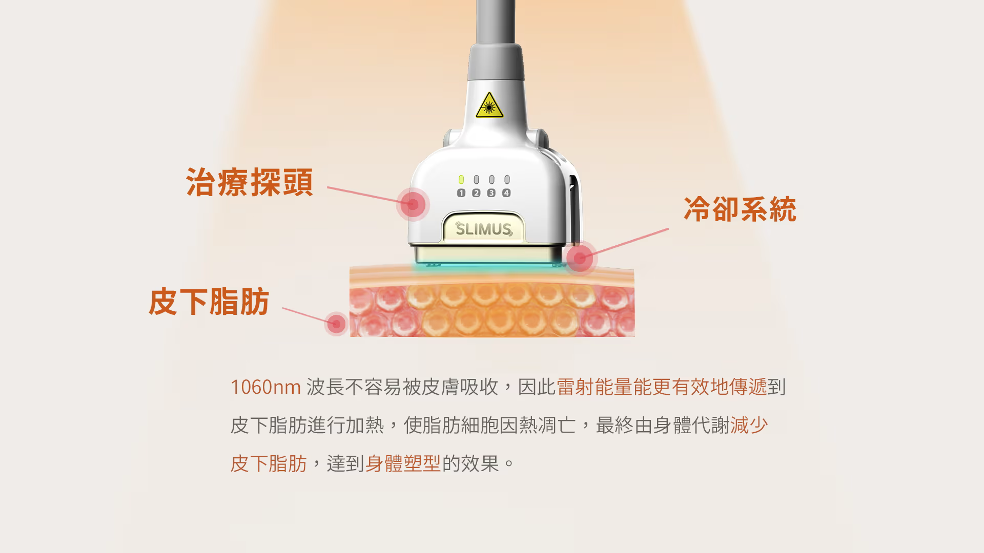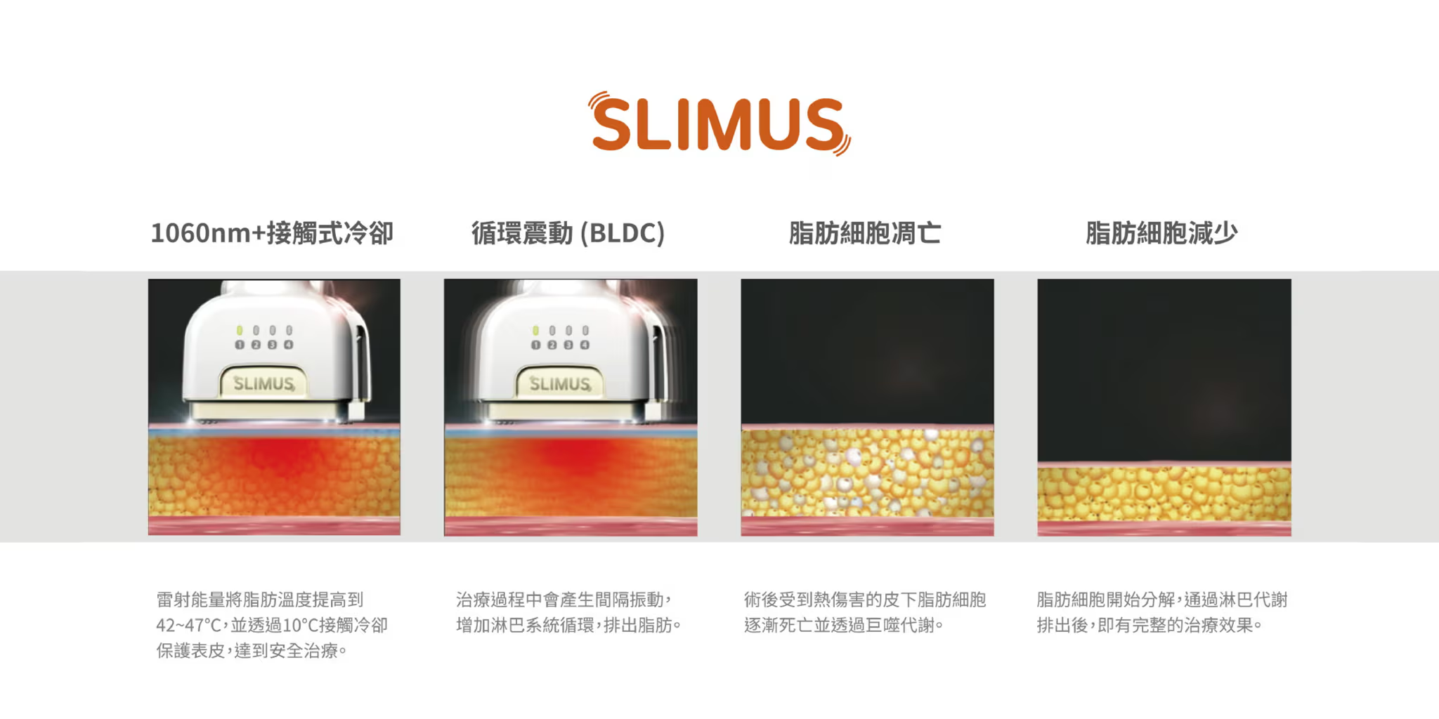現代人忙碌、不想要有恢復期,讓非侵入式、隔天立即可上班的體雕、減脂療程正受歡迎,除了冷凍溶脂、超音波溶脂之外,可局部小範圍瘦身、讓皮膚更緊緻的雷射減脂更是多數人的選擇!但傳統的雷射減脂在術程中會讓皮膚感受到很燙、很不舒服,令人為之卻步,直到SLIMUS希立纖的出現,提升效率、只需25分鐘且大大降低痛感,讓體雕減脂不再是惡夢,而是種質感享受!